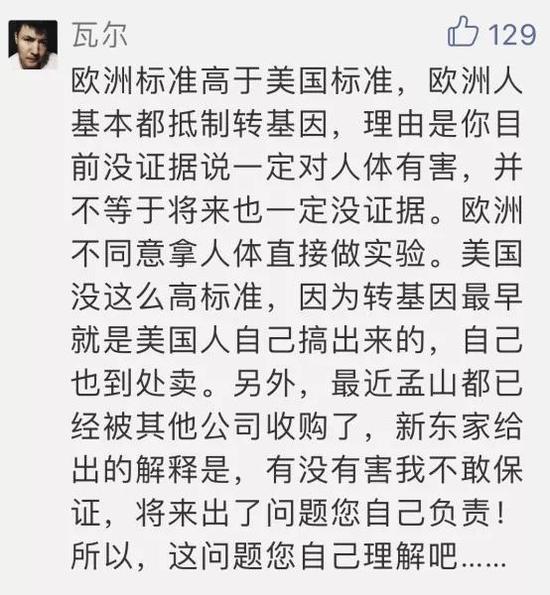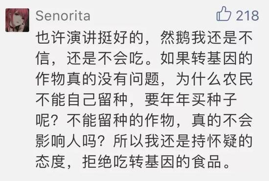 崔凱:想想三鹿集團(tuán)、長生生物等事件的處理結(jié)果,若一群育種專家明知故犯、明目張膽的去研究會(huì)“致癌“、“絕育”的轉(zhuǎn)基因食品,早已被繩之以法。全世界從事轉(zhuǎn)基因育種工作的研究人員數(shù)以萬計(jì),他們是受過良好教育的分子生物學(xué)家,開發(fā)出比傳統(tǒng)育種技術(shù)更為精準(zhǔn)的新一代生物技術(shù),研究成果會(huì)在學(xué)術(shù)刊物上公開發(fā)表,選育的新品種也要經(jīng)過政府和相關(guān)機(jī)構(gòu)的專業(yè)評(píng)審才能夠商業(yè)化種植。