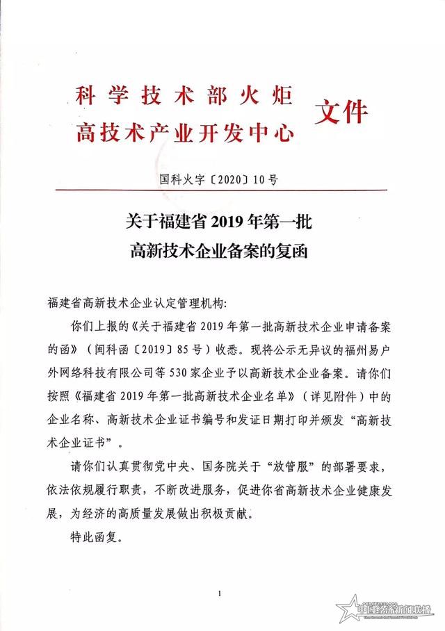 中國經(jīng)濟(jì)新聞聯(lián)播1月13日福州電(記者王海珠 通訊員蔡淑坤)根據(jù)《科學(xué)技術(shù)部火炬高技術(shù)產(chǎn)業(yè)開發(fā)中心文件》(國科火字〔2020〕10號),福建省亞明食品有限公司入選“福建省2019年第一批高新技術(shù)企業(yè)名單”,發(fā)證日期:2019年12月2日。