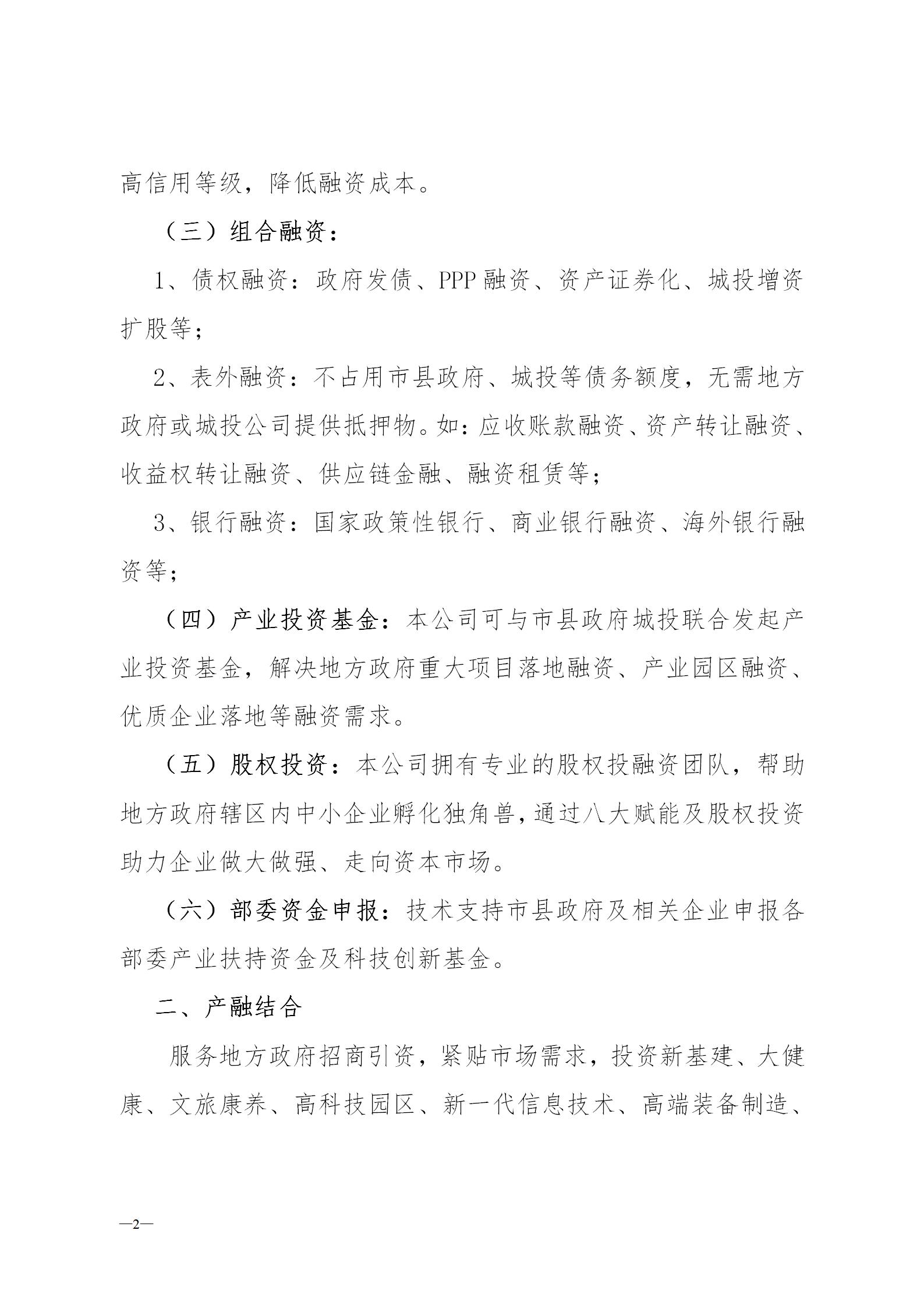 為市縣政府提供“融資綜合解決方案”項(xiàng)目