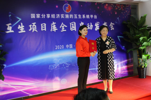 北京互生經(jīng)濟(jì)學(xué)研究院院長(zhǎng)何開秀教授向互生項(xiàng)目庫(kù)業(yè)務(wù)總公司總裁何珊女士頒發(fā)聘書