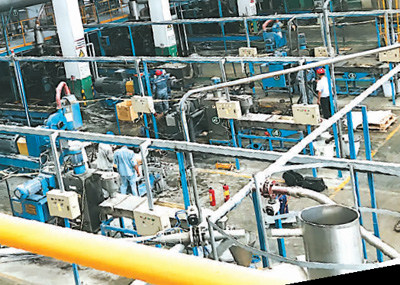 珠海萬通化工有限公司塑料改性車間內(nèi),工人正在忙碌。