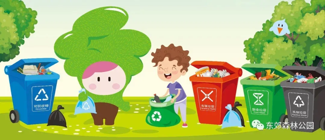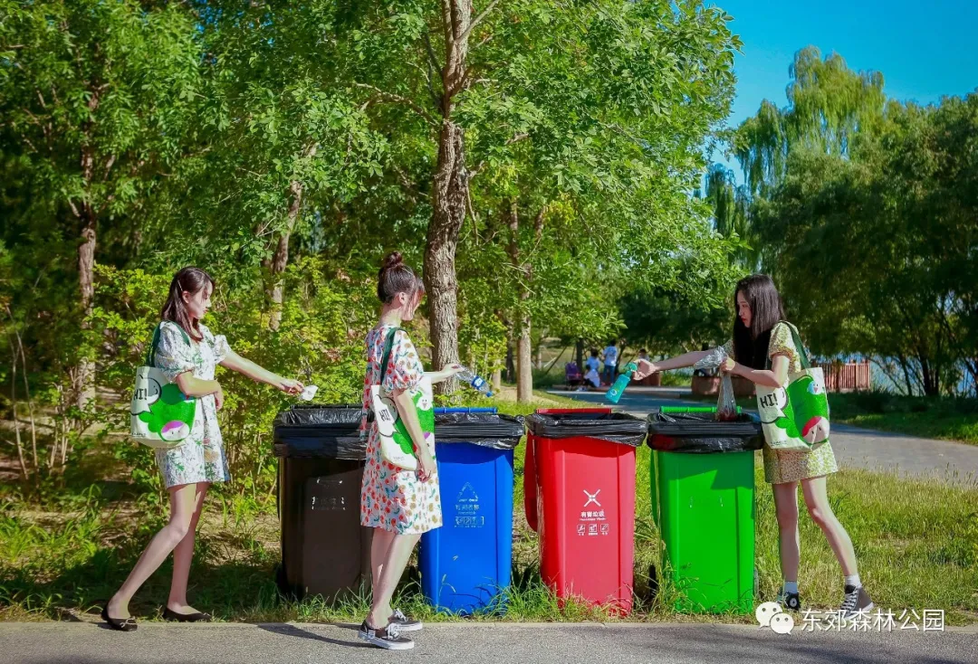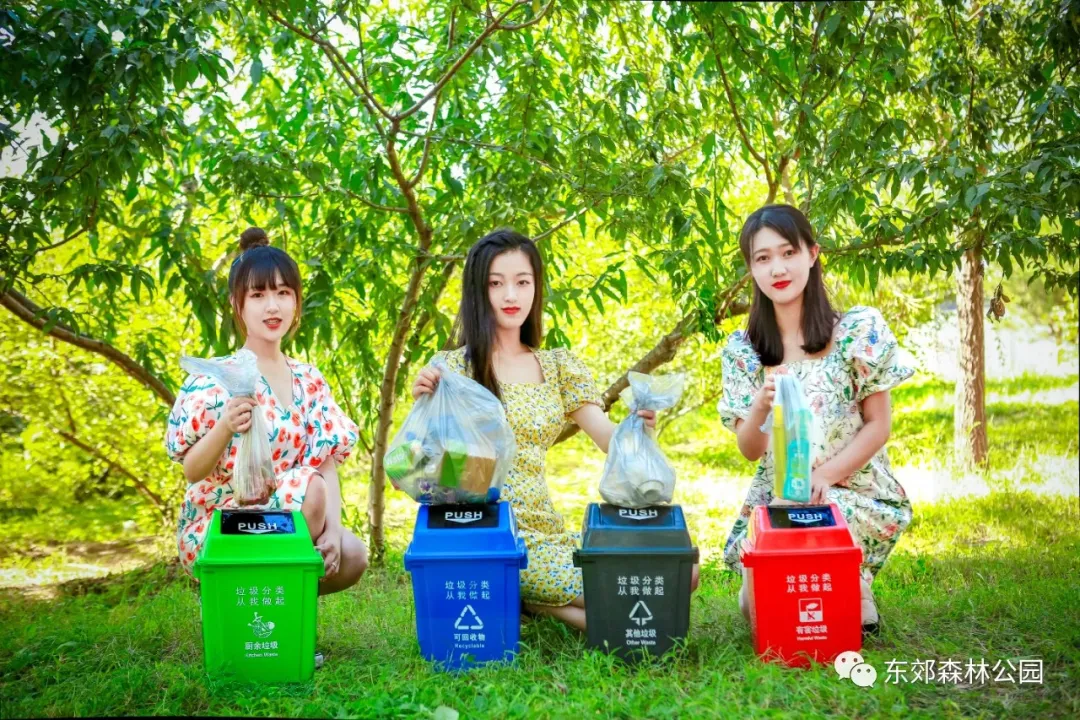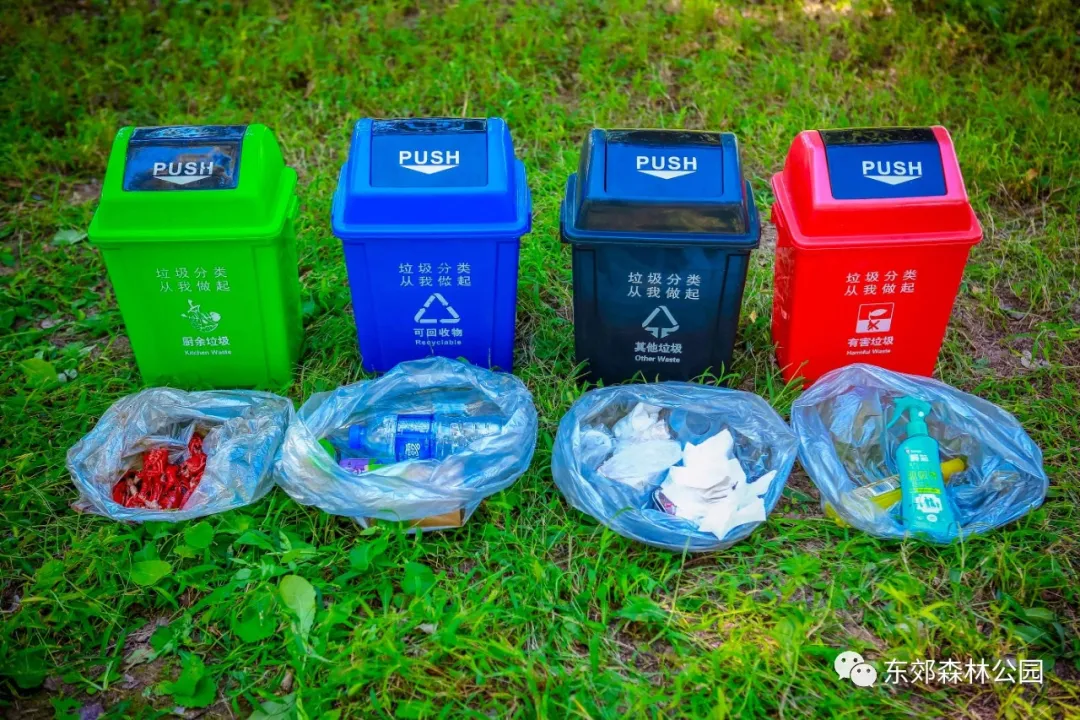 東郊森林公園為游客們準(zhǔn)備了四分類垃圾桶