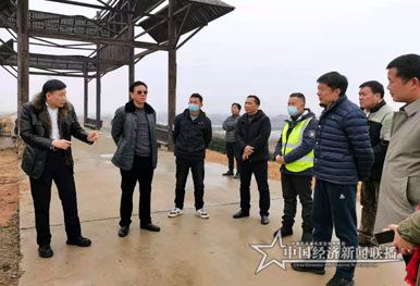 圖為湖北廣電壟上集團(tuán)黨委書記-董事長鄧海(中)在考察現(xiàn)場談自己的觀點(diǎn)。