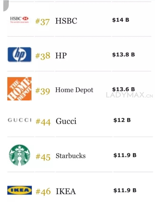 在美妝護(hù)膚領(lǐng)域,寶潔落選,歐萊雅排名第34位,品牌價(jià)值為146億美元。具體的排名如下: