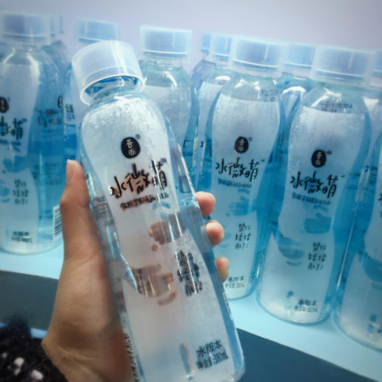 (1)提到水微萌,不得不說的就是其顏值,以“萌”為包裝主旋律,以淺藍(lán)色、淺綠色基調(diào)搭配乳白色形成產(chǎn)品小清新風(fēng)格,圓角流線型包裝讓產(chǎn)品更加萌動,在這個“看臉”的世界,高顏值的包裝無疑是產(chǎn)品的在消費(fèi)者心目中的敲門磚?,F(xiàn)在推出380ml升級版,號稱飲品界的“阿瑪尼小胖丁”。