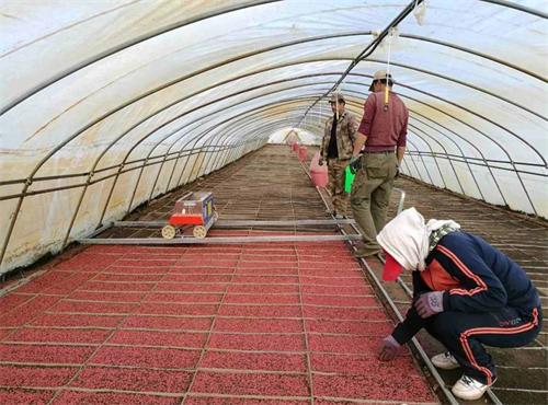 【中國經(jīng)濟(jì)新聞聯(lián)播訊 通訊員張申】電動(dòng)播種機(jī)、電動(dòng)覆土機(jī)、電動(dòng)運(yùn)輸車等自動(dòng)化設(shè)備聯(lián)合“三膜覆蓋”技術(shù),無疑可以最大限度地提高水稻播種的工作效率。今天上午,在北大荒股份二九〇分公司巴山湖管理區(qū)超級(jí)育秧大棚內(nèi),水稻播種工作正有序開展。為了育好苗、育壯苗,分公司大力推廣“三膜覆蓋”技術(shù),各管理區(qū)還成立黨員科技服務(wù)隊(duì)深入到春播生產(chǎn)一線提供技術(shù)指導(dǎo),幫助種植戶解決在春播生產(chǎn)過程中遇到的困難。分公司還成立了兩個(gè)質(zhì)量驗(yàn)收小組,每天深入各管理區(qū)進(jìn)行檢查指導(dǎo),對(duì)發(fā)現(xiàn)的問題當(dāng)場糾錯(cuò),確保播種標(biāo)準(zhǔn)不減。