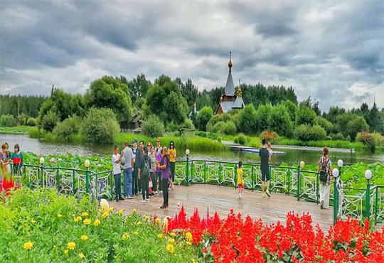 旅游方面,我們是4A景區(qū),在吃、住、行、游、購、浴完全在這些建筑當中展現(xiàn)出來,在文化、娛樂方面,我們伏爾加莊園有自己的演藝團隊,這些年不斷地進行改進調整演出節(jié)目內容,游客到這來能看到俄羅斯藝術家、民族歌舞的演示;在夏季我們充分利用水面、小島、教堂等舞臺景觀;當夜幕降臨時,一曲“莫斯科郊外的晚上”拉開了伏爾加之夜的序幕,演員們坐在天鵝游船上遠遠地飄過來,在五彩繽紛燈光襯映下,游客可以在這里領略到彩燈的宏偉磅礴。更讓游客們沉浸在一種喜悅的氛圍之中,更加照亮了游客們對美好生活的向往。