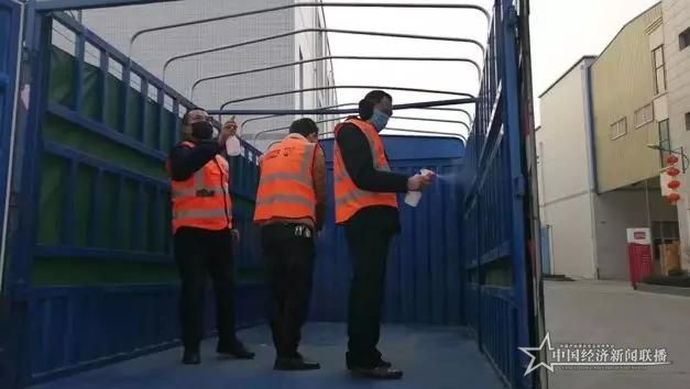 往返疫區(qū)運輸物資車輛經(jīng)由工作人員全面消毒后待重返疫區(qū),為一線醫(yī)護人物保障絕對安心、放心的救災物資