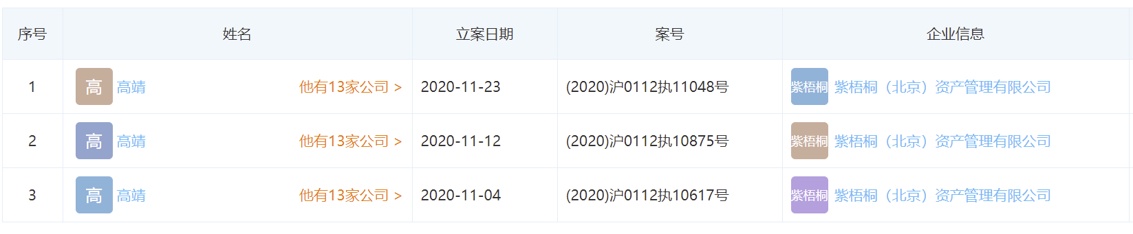 2020年11月,上海市閔行區(qū)人民法院就此前三家公司(上海萬芙裝飾材料有限公司、上海欣晴辦公家具制造有限公司和人北京科海嘉業(yè)科技有限公司)分別提出申請執(zhí)行紫梧桐買賣合同糾紛案予以定案。法院認為,梧桐紫未按執(zhí)行通知書指定的期間履行生效法律文書確定的給付義務,因此將公司及法定代表人高靖列為失信被執(zhí)行人并采取限制消費措施。