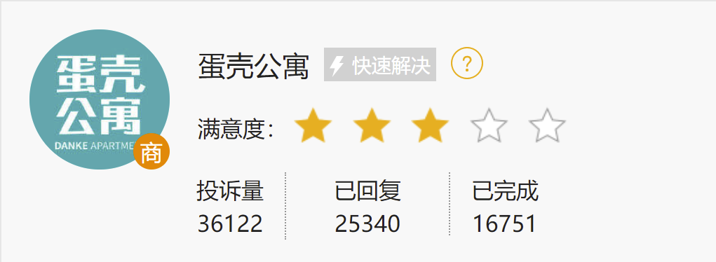 黑貓投訴平臺則顯示,僅針對蛋殼公寓的而投訴量已經(jīng)高達36122件,且大部分糾紛處于投訴網(wǎng)站已回復但仍然未被解決的狀態(tài)。