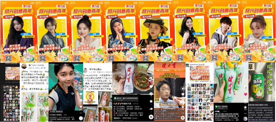 同時,健力寶招募集結百位“健力寶盡興創(chuàng)意青年”,完成了產(chǎn)品種草、品牌聯(lián)動等多輪次青年傳播行動。通過一系列活動,使青年群體更具參與感和歸屬感,形成強有力的聚合效應,進一步擴大品牌影響力。