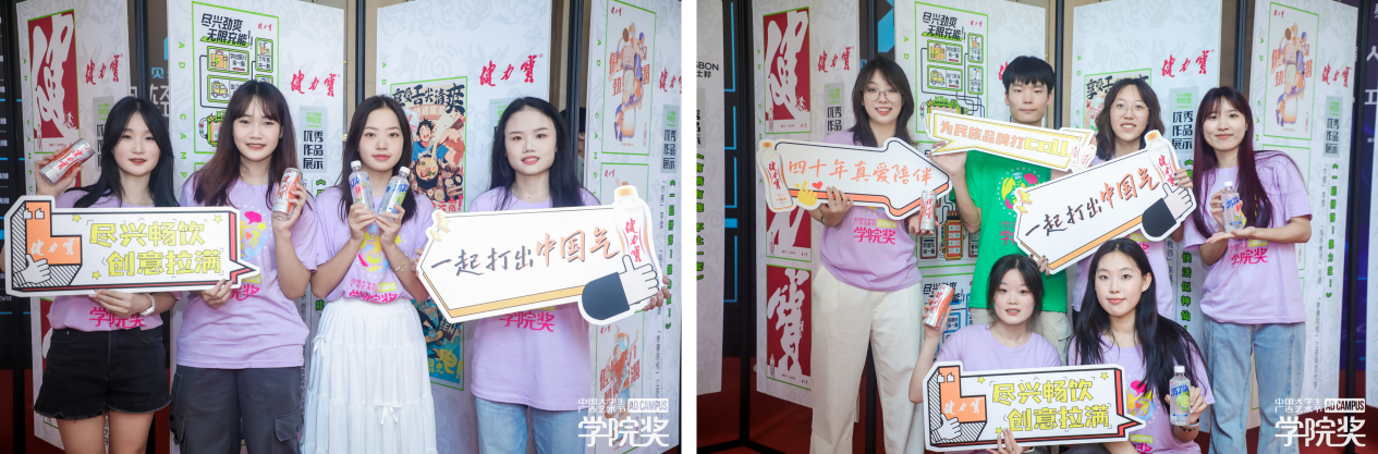 場外,健力寶優(yōu)秀創(chuàng)意作品落地展示,吸引了眾多同學駐足留念。這些閃耀著創(chuàng)意花火的作品不僅印證了健力寶強大的國民度,也讓無數(shù)參會師生感受到新青年的創(chuàng)意力量。