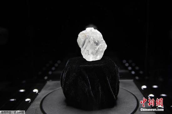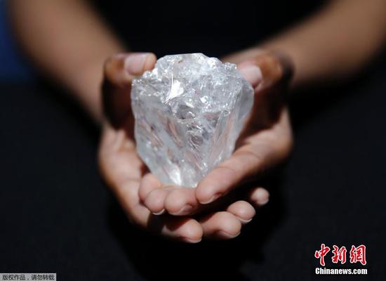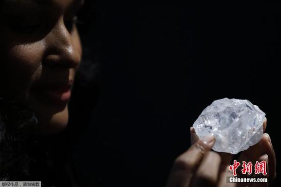 當(dāng)?shù)貢r(shí)間2016年5月4日,美國(guó)紐約,一位模特在蘇富比拍賣公司展示一塊超大的鉆石,據(jù)蘇富比拍賣公司介紹,這塊鉆石的售價(jià)將超過(guò)4.5億元人民幣。