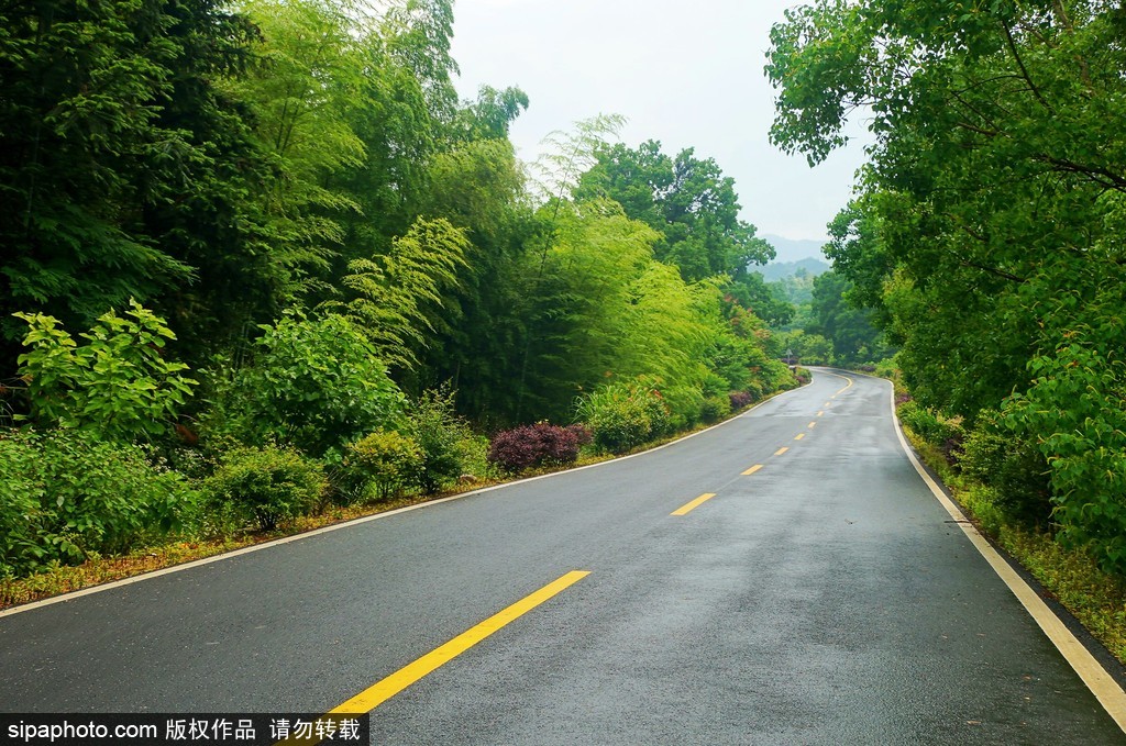 一場(chǎng)小雨過(guò)后,柏油馬路也顯得烏黑锃亮,與自然景觀構(gòu)成了一副美麗的圖景。途徑此處的省道218便利了塔川村的交通,塔川秋色也使這段公路成為了“最美公路”。