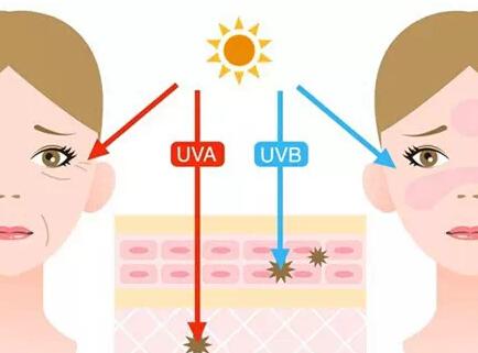 簡單來說UVA和UVB是兩種能夠刺激皮膚產(chǎn)生黑色素的紫外線分類,也是傷害皮膚的“罪魁禍?zhǔn)住?,UVB--穿透能力較弱,對(duì)皮膚的傷害例如“曬傷”、“曬紅”。UVA--穿透能力較強(qiáng),對(duì)皮膚的傷害就是“曬黑”和“肌膚老化”。