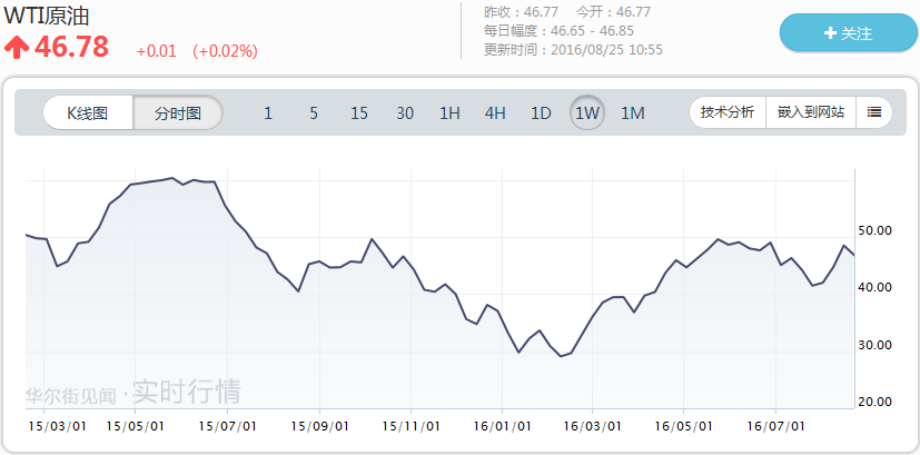 布倫特原油和WTI原油價格走勢圖,今年年初,布油和美油價格雙雙跌破30美元。