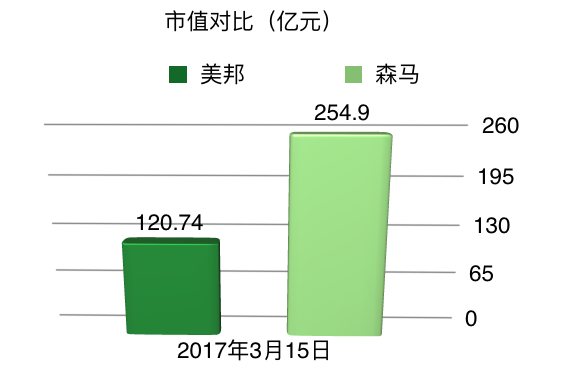 森馬和美邦的市值分別是254.90億和120.74億(注:根據(jù)3月15日當(dāng)天匯率計(jì)算),森馬市值是美邦的2倍多。要知道,在上市之初,森馬是略低于美邦的。