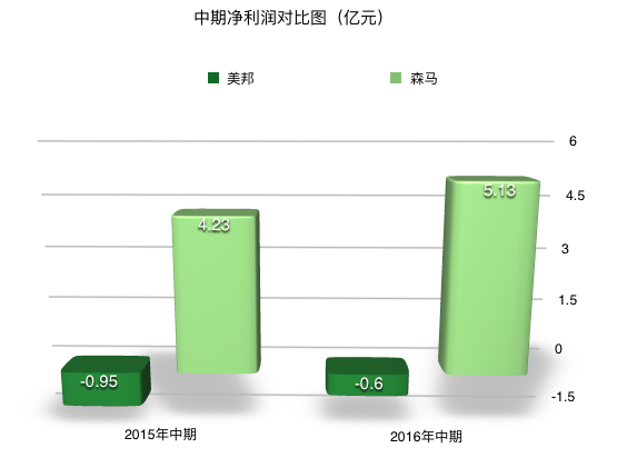 美邦:2016中期,-0.6億元;2015中期-0.95億元,同比升36.48%。