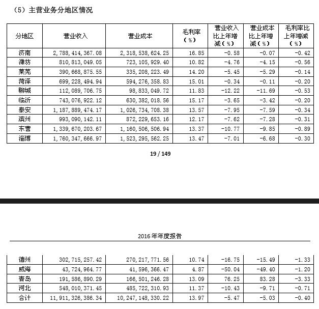 地區(qū)方面,除去德州毛利率僅為4.87%之外,其他地區(qū)毛利率差別不大,在 10%-16%之間。