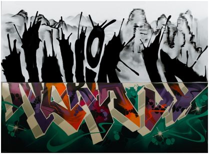 京東和諾基亞邀請(qǐng)了兩組涂鴉達(dá)人,分別在相對(duì)的兩面墻體上各完成中西兩種風(fēng)格的半幅畫(huà)作——西式涂鴉的五彩紛呈,東方水墨的簡(jiǎn)約意境,姿勢(shì)十分到位,對(duì)比十分鮮明。中西涂鴉的較量過(guò)后,引來(lái)了整個(gè)實(shí)驗(yàn)的高潮!實(shí)驗(yàn)師將諾基亞7放置于兩幅畫(huà)之間,用產(chǎn)品獨(dú)有的雙視野拍攝模式,同時(shí)記錄鏡頭前后的兩面半幅畫(huà)作。兩面風(fēng)格迥異的涂鴉畫(huà)作竟被天衣無(wú)縫地拼合在一起,顯示出“NOKIA JD”的字樣!