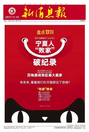 在雙11當(dāng)日,天貓平臺僅僅一小時(shí),枸杞銷量就已經(jīng)突破179噸。百瑞源作為寧夏枸杞的龍頭品牌,開售僅7分鐘,百瑞源天貓旗艦店銷售額便突破100萬,當(dāng)日累計(jì)銷售額925萬元,爆款單品熱銷15萬件,成為了雙11枸杞行業(yè)的大贏家,名列國內(nèi)滋補(bǔ)品類目前十,再創(chuàng)歷史新高。各大媒體爭相報(bào)道,百瑞源枸杞直接上了寧夏《新消息報(bào)》頭版頭條,自媒體平臺的段子層出不窮,寧夏枸杞分分鐘被玩壞。