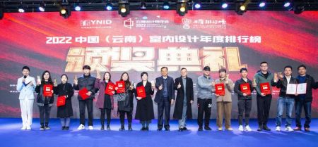 在年會下半場“設(shè)計師之夜”上,作為每屆【云南設(shè)計師年會】的重頭戲,被譽為“云南設(shè)計界的奧斯卡獎”之稱的“2022第九屆【金裝獎】室內(nèi)設(shè)計大賽和有“云南設(shè)計福布斯排行榜”著稱的2022中國(云南)室內(nèi)設(shè)計年度排行榜也在人們憧憬和期待的目光中逐一揭開面紗,亮相舞臺,接過了頒獎嘉賓手中那個充滿希望和責任的獎杯。