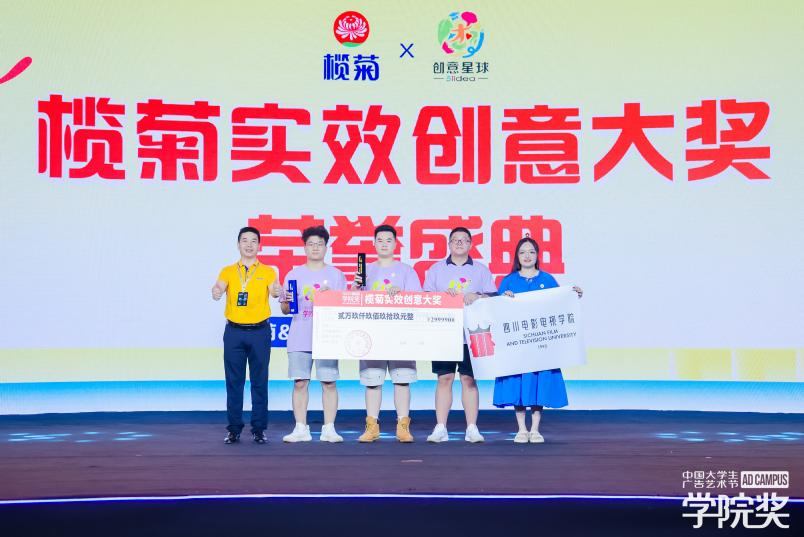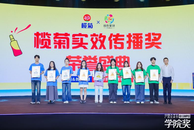備受學子們期待的“欖菊實效創(chuàng)意獎”也在本次盛典上正式頒布!經(jīng)過頂尖學府名師、創(chuàng)意行業(yè)大咖、企業(yè)方代表、欖菊校園大使“蚊化人”共同遴選,為欖菊品牌評審出最符合實效需求的優(yōu)秀作品。今年“欖菊實效創(chuàng)意獎”共設(shè)置獎金數(shù)為99999元人民幣,還特別設(shè)置了29999元欖菊實效創(chuàng)意大獎,鼓勵廣大青年學子共創(chuàng)欖菊實效佳作!欖菊實效創(chuàng)意獎的設(shè)立和發(fā)展延續(xù)為青年學子提供多一個展示自己執(zhí)行創(chuàng)意能力的機會,助力欖菊挖掘和培養(yǎng)行業(yè)內(nèi)的新銳青年才俊。同時也鼓勵更多的青年學子在創(chuàng)作時注重創(chuàng)意的實踐性和實效性,為廣告和創(chuàng)意領(lǐng)域注入新的活力和動力!活動現(xiàn)場,央影(北京)傳媒有限公司執(zhí)行董事黨海燕女士宣布最終結(jié)果,并與天津師范大學新聞傳播學院副院長胡振宇女士共同為創(chuàng)作團隊頒發(fā)榮譽。