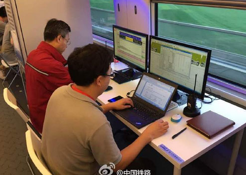 在昨天的試驗(yàn)中,標(biāo)準(zhǔn)動(dòng)車組最高跑到了428.6公里/小時(shí)。據(jù)在現(xiàn)場(chǎng)的“高鐵見聞”介紹,今天9點(diǎn)多,列車在試驗(yàn)前也先跑了一段“熱熱身”。而當(dāng)兩車最終交匯時(shí),相交時(shí)間不到2秒。