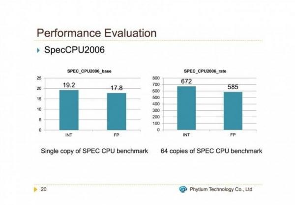 其實,飛騰2000早在去年就已經公布,也就是在國際大會hotchip公布的“火星”,根據(jù)當時的PPT,“火星”在權威的Spec 2006測試中,成績?yōu)檎麛?shù)672,浮點585,足以和Xeon E5-2699v3相媲美。誠然,由于去年還沒有產品,這個成績是采用模擬器的測試分數(shù)。