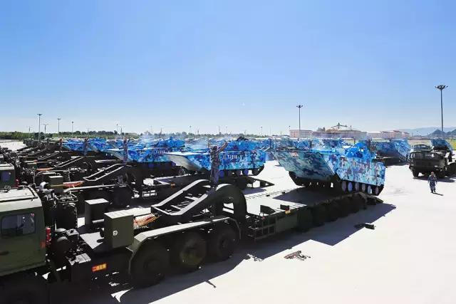 圖為運(yùn)送ZBD-05式兩棲裝甲車的重裝運(yùn)輸部隊(duì)