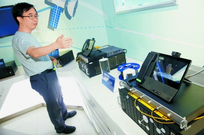 潘建偉院士演示實用化量子通信產(chǎn)品進行遠距離保密通話。