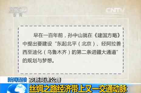 京新高速公路的建成,將成為北京連接內(nèi)蒙古西北部、甘肅北部和新疆最為便捷的公路通道,與現(xiàn)有道路相比,新建的京新高速公路將北京至新疆的距離縮短1300多公里。