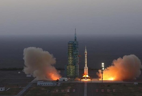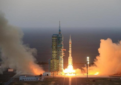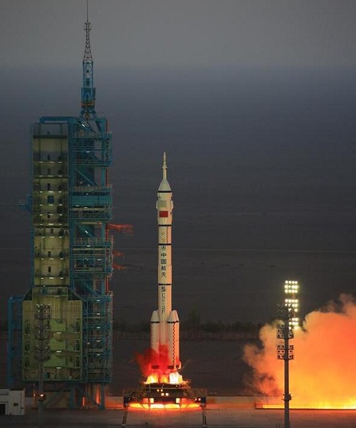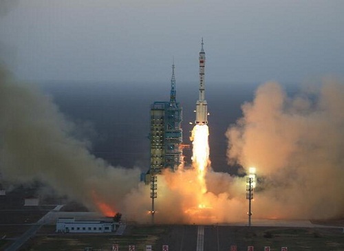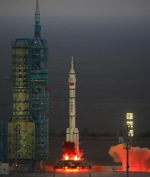 10月17日7時30分,搭載著神舟十一號載人飛船的長征二號F遙十一運載火箭在酒泉衛(wèi)星發(fā)射中心點火升空。(記者李剛攝)
