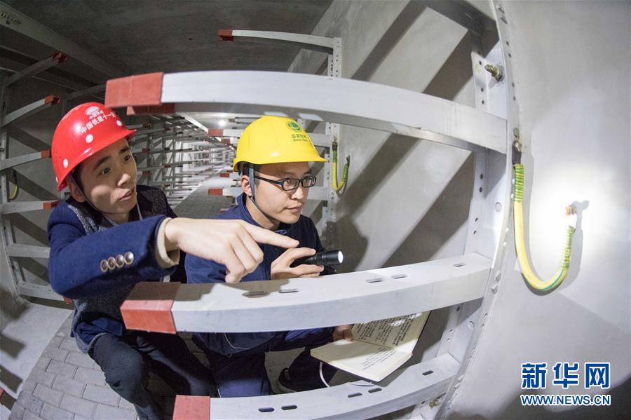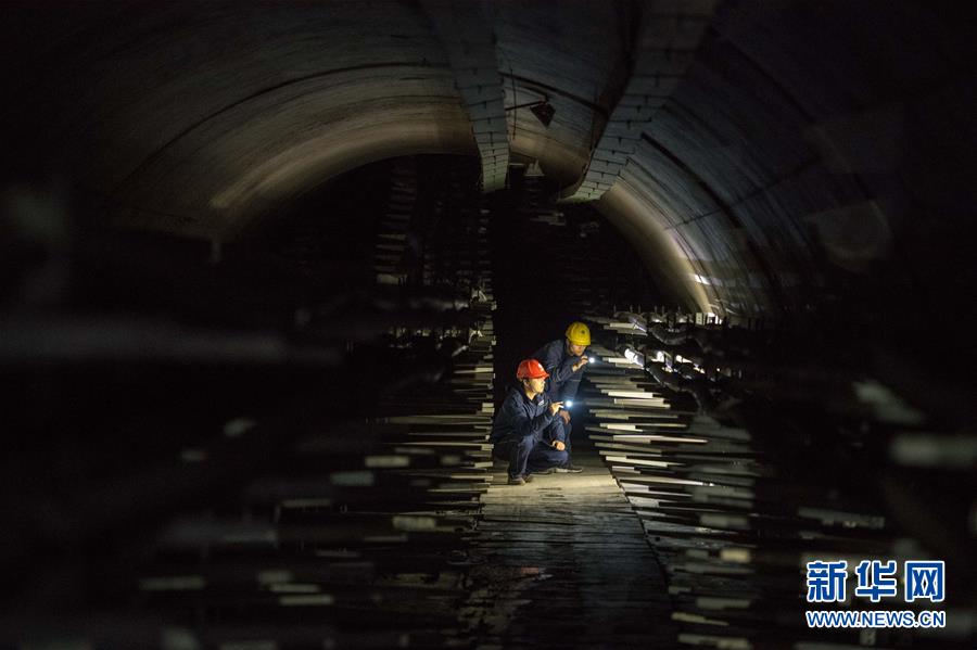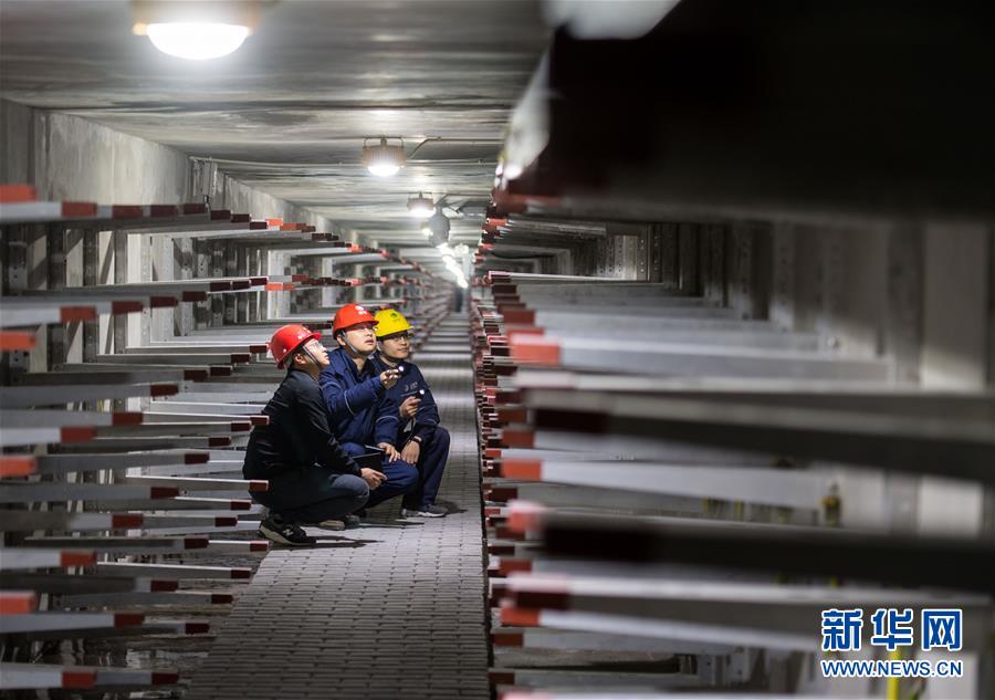 11月24日,解放碑地下環(huán)形電力隧道的一段支線電力隧道內(nèi),兩名國網(wǎng)重慶市區(qū)供電公司的技術(shù)人員(右一、右二)在對預(yù)留的商業(yè)用戶接入隧道的電力設(shè)施設(shè)備進(jìn)行竣工驗收。當(dāng)日,經(jīng)過3年多的緊張建設(shè),重慶地下環(huán)形“電力高速路”——解放碑地下環(huán)形電力隧道工程順利通過竣工驗收,并正式投入運行。解放碑環(huán)形電力隧道總長2408米,其中1198米的干線電力隧道已經(jīng)成功接入解放碑商圈及周邊地區(qū)的4個110千伏變電站形成環(huán)線,支線電力隧道1210米也開始陸續(xù)接入用戶。據(jù)介紹,作為重慶市重點工程,2013年7月開工建設(shè)的解放碑地下環(huán)形電力隧道按照滿足未來20年電力需求設(shè)計,隧道高2.8米、寬2.4米,投入運行后將解決重慶渝中半島和重慶最繁華的解放碑商業(yè)區(qū)配電設(shè)施老化、無法擴建等問題,使解放碑商圈供電負(fù)荷承載能力得到極大加強。新華社記者 劉潺 攝