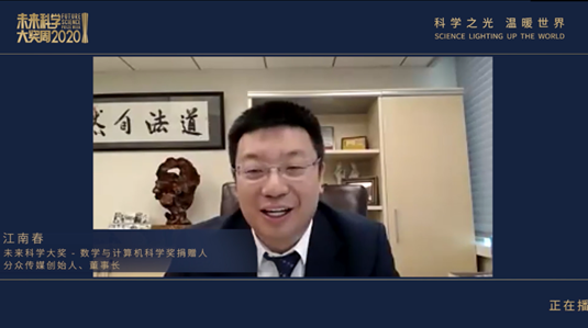 未來科學(xué)大獎(jiǎng) - 數(shù)學(xué)與計(jì)算機(jī)科學(xué)獎(jiǎng)捐贈(zèng)人,分眾傳媒創(chuàng)始人、董事長(zhǎng)江南春表示:數(shù)學(xué)是未來科學(xué)發(fā)展的基礎(chǔ),是未來高科技競(jìng)爭(zhēng)力的核心關(guān)鍵。未來科學(xué)大獎(jiǎng)成立五年來,不僅禮贊科學(xué)家、對(duì)科學(xué)精神的致敬,同時(shí)也樹立了一種社會(huì)的示范效應(yīng),告訴大家從小就要學(xué)好數(shù)學(xué)、學(xué)好計(jì)算機(jī)、爭(zhēng)當(dāng)科學(xué)家,讓科學(xué)家成為孩子們心中的明星和榜樣,激發(fā)民間的科學(xué)熱情。
