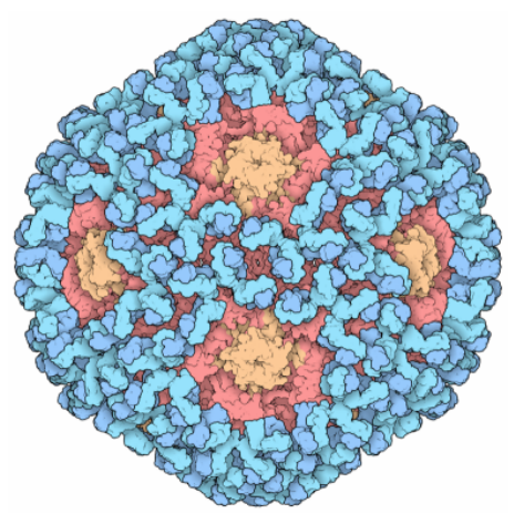 圖1。 HPV結(jié)構(gòu):左為模式圖,右為電鏡圖,主要顯示的是HPV的蛋白衣殼圖1。 HPV結(jié)構(gòu):左為模式圖,右為電鏡圖,主要顯示的是HPV的蛋白衣殼