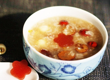作用:補血活血 用料:山楂100克,紅棗100克,大米100克,枸杞子10克