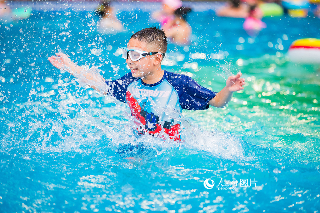 2020年8月4日,重慶市沙坪壩區(qū)聯(lián)芳街道學(xué)堂堡社區(qū)的一游泳池,市民們在開心地戲水游泳。連日來,重慶持續(xù)高溫,眾多市民紛紛走進泳池、水上樂園等享受清涼。孫凱芳/攝