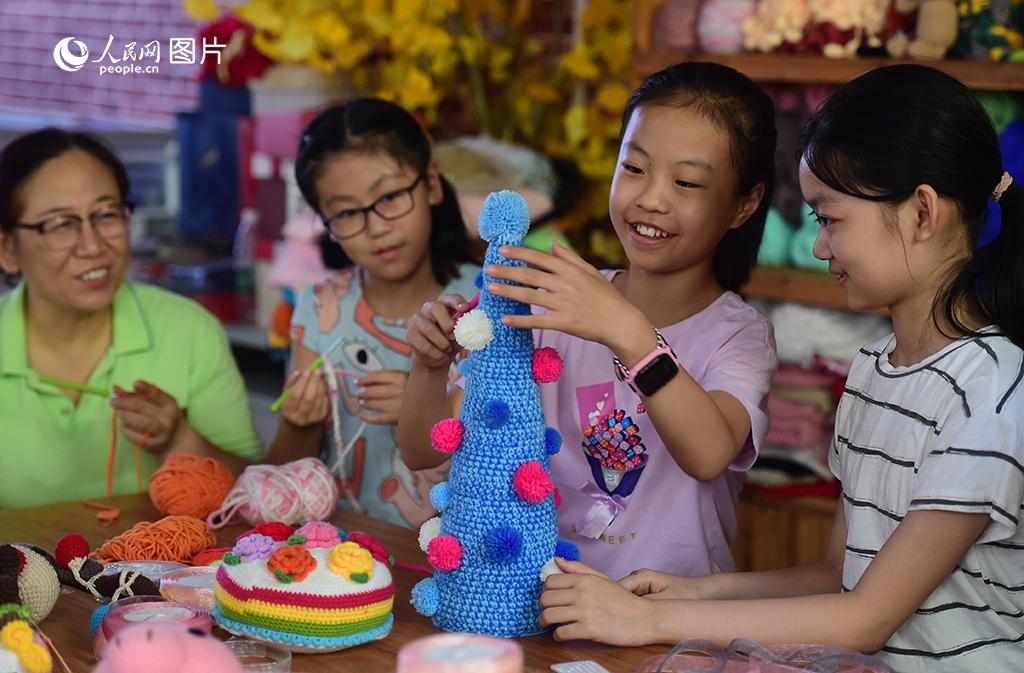 暑假期間,河北滄州東籬彩菊紡織品有限公司在扶貧車間里,為少年兒童開設(shè)的“手工毛線編織公益課堂”吸引了眾多孩子體驗。課堂上由專業(yè)老師指導(dǎo)編織,小朋友們從中體驗傳統(tǒng)技藝,提高動手能力,豐富暑假生活。傅新春/攝