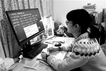 上海盧灣中學的一名教師在家里為學生上“云班課”。 新華社記者 劉穎 攝