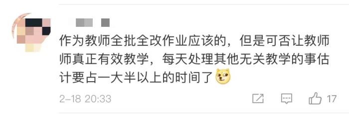 值得注意的是,對于杜絕要求家長批改作業(yè),評論區(qū)中教師們的聲音也不能忽視:“一線老師太難了!能保證老師的8小時睡眠嗎?”