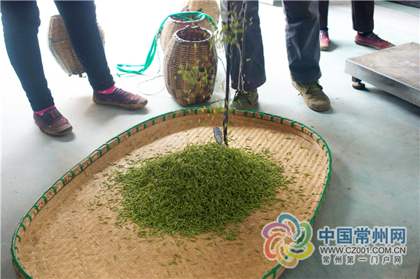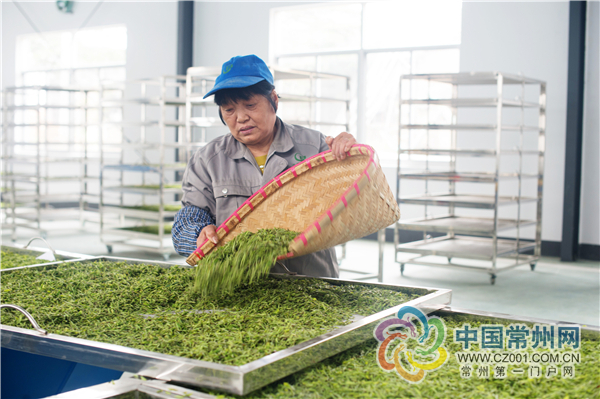 ④采茶場邊的車間里,采茶婆婆正在把采好的茶葉進行風干,一批批新茶即將誕生。