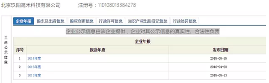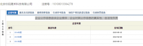 北京玖陽晟禾科技有限公司還在工商系統(tǒng)公示了2013、2014年年報。