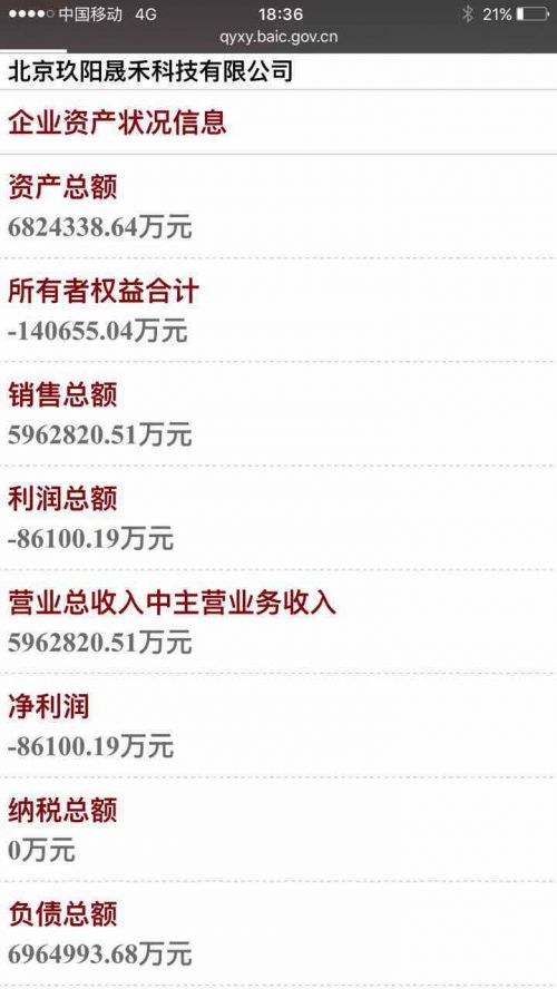 對于相差萬倍的財務數(shù)據差錯因何產生?田樸珺解釋,可能是工商局信息系統(tǒng)差錯。她說公司有完整的財務數(shù)據和第三方審計報告,明早調出來和提交工商局的原始報表一核對便知。