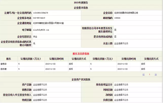 在2015年年報當中,北京玖陽晟禾科技有限公司選擇不再公示上述財務信息。