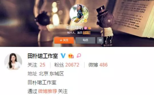 每經也注意到田樸珺個人新浪微博認證賬號也關注了“田樸珺工作室”。