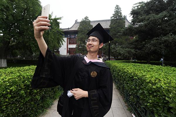 7月5日的畢業(yè)典禮,安永睿坐在180多名元培學(xué)院的學(xué)生中并不起眼。在整個(gè)采訪過程中,安永睿一直面帶微笑,文靜內(nèi)斂。他笑稱,因?yàn)樽约旱男愿皴e(cuò)過了好多女生,“沒來得及表白人家就已經(jīng)名花有主”。