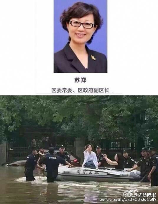 近日,網(wǎng)上一張照片引發(fā)熱議:一名穿白色上衣的女士坐在皮劃艇上,艇中一身著黑色衣服的女性疑似正為其拍照,而多名身著特警制服的人員在水中扶著皮劃艇。有網(wǎng)友指出該場(chǎng)景疑為5日南京市及玄武區(qū)部分官員在查看抗?jié)彻ぷ?,“擺拍”的女性是玄武區(qū)委常委、副區(qū)長(zhǎng)蘇鄭。7日,南京市委宣傳部新聞處負(fù)責(zé)人證實(shí),“網(wǎng)上說擺拍的言論完全是誤解,可能是角度的問題”,南京市委宣傳部文明辦一工作人員稱,網(wǎng)友解讀系“烏龍”,該女干部是帶病抗洪,工作人員幫助扶著快艇推往一線。
