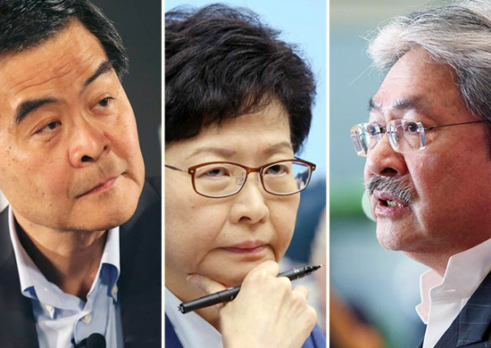 熱門人選(從左至右):現(xiàn)任特首梁振英、政務(wù)司司長林鄭月娥、財政司司長曾俊華