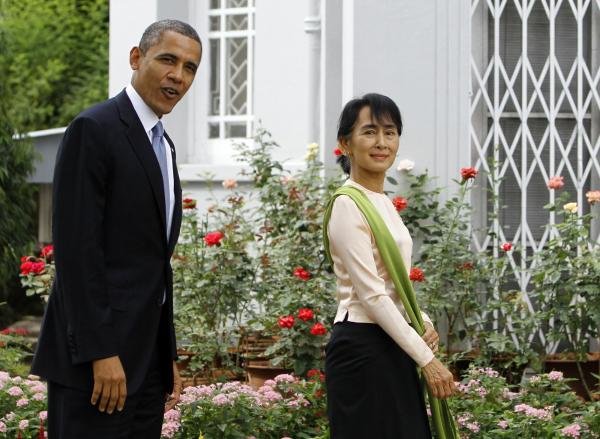 2012年11月19日,昂山素季在緬甸仰光會(huì)見奧巴馬
